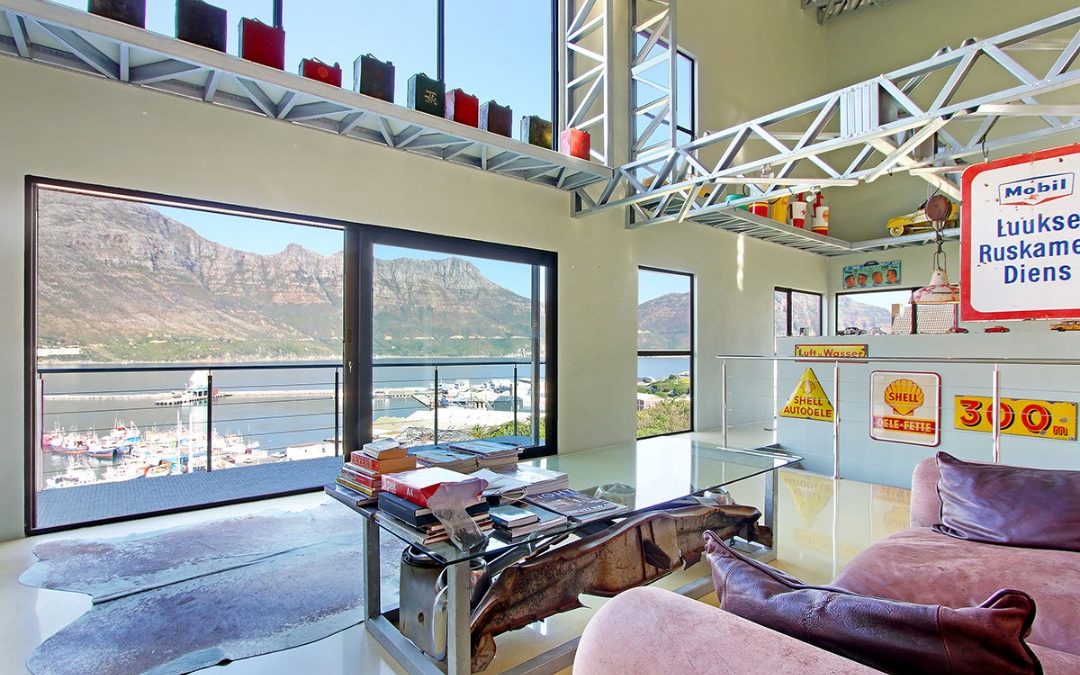 Commanding attention from its front row position in Hout Bay Heights overlooking the Bay’s private Yacht Club, popular Bay Harbour Market and vibrant fishermen’s wharf, its three-story elevation is a marvel of expansive space which stretches across three levels of floor to ceiling glass.